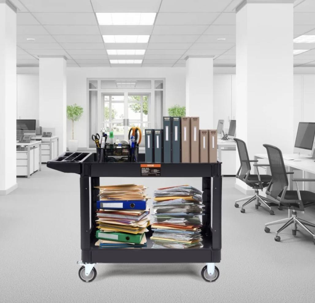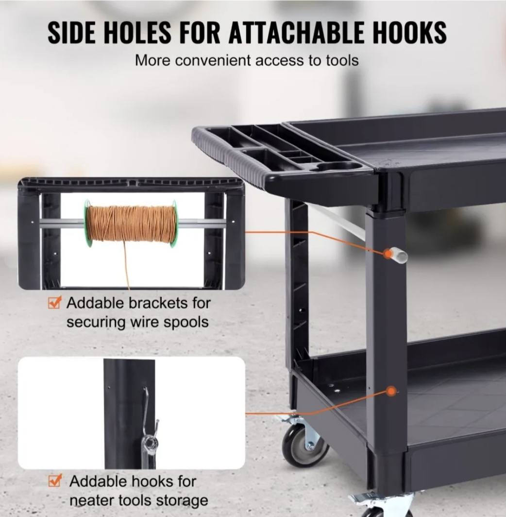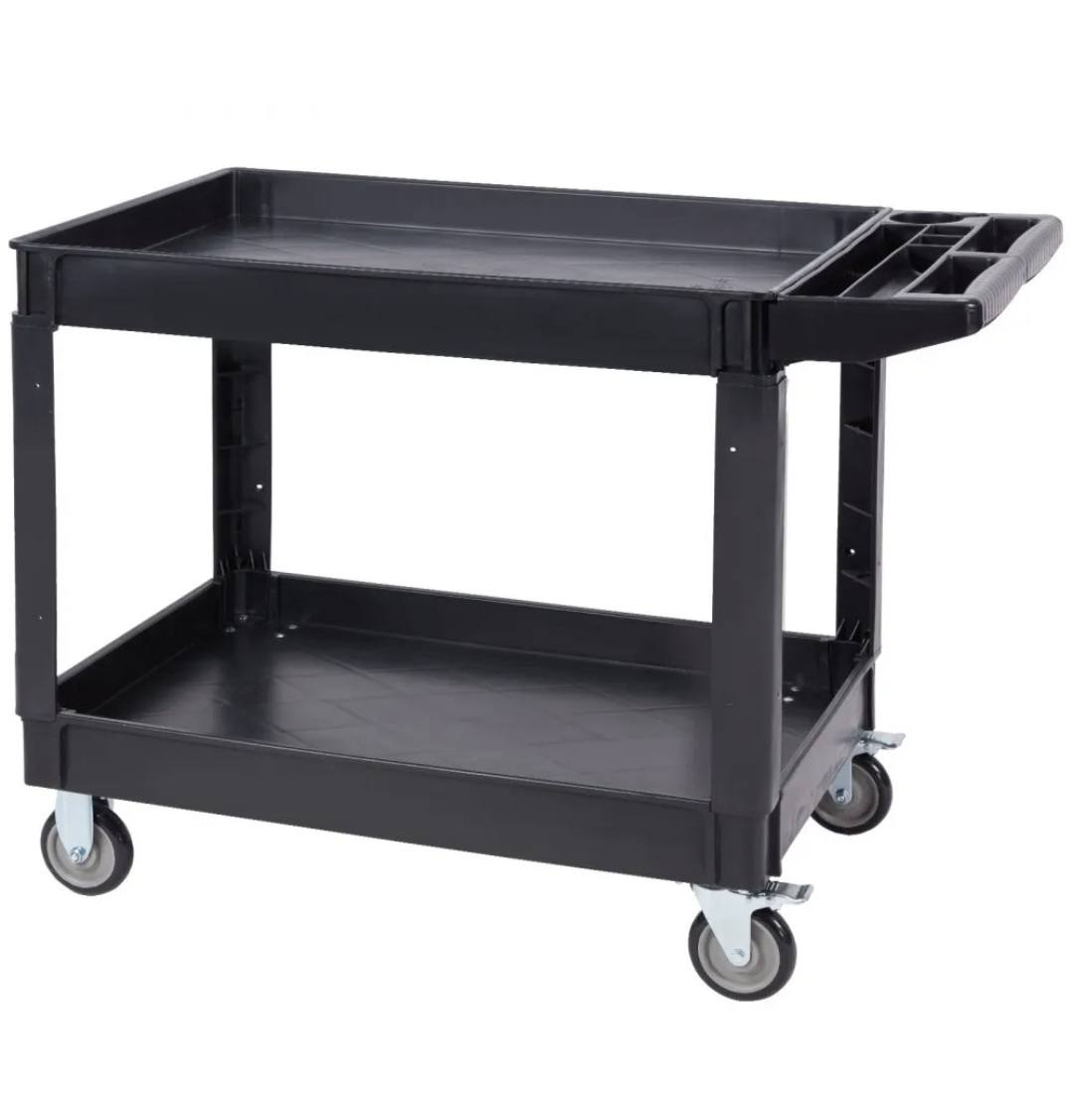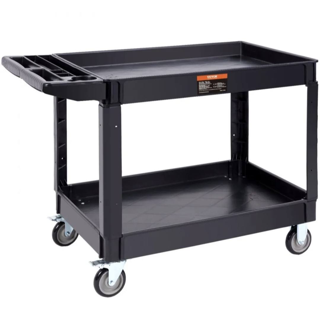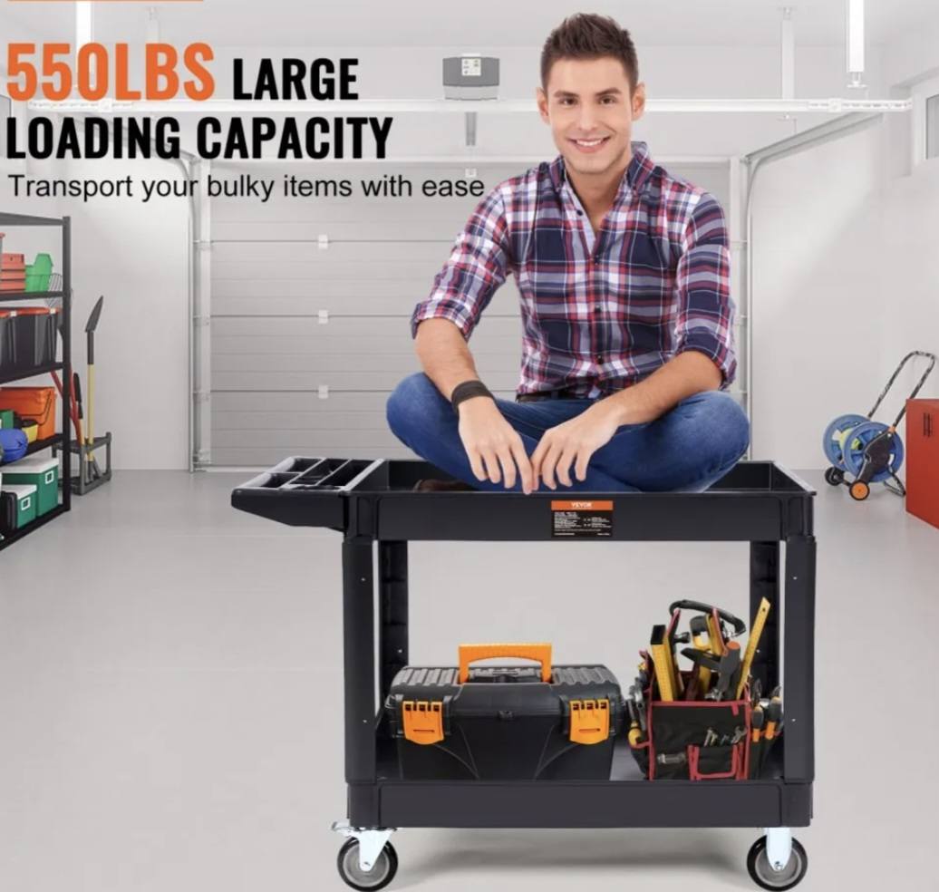 *Strong Weight Capacity….. This 2 shelf utility cart can effortless transport 550 lbs heavy loads, such as oversized cartons, large filing cabinets, and hefty toolboxes. Quality polypropylene material is corrosion-resistant, impervious to debris, and easy to clean. High-density structural foam construction makes this utility cart sturdy, lightweight, and maneuverable, ideal for long-term heavy-duty transportation needs.