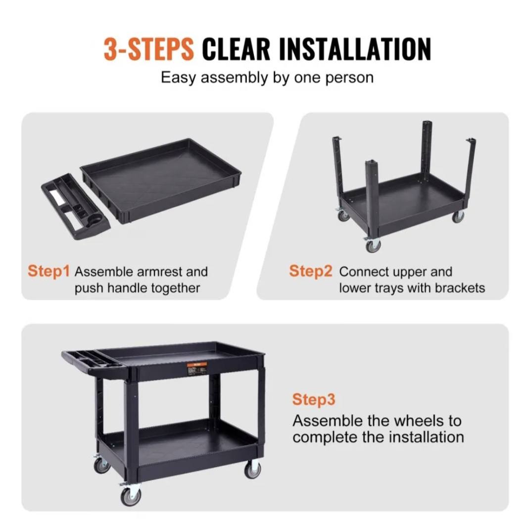 This rolling utility cart can be assembled in just 3 simple steps. It comes with detailed instructions, and assembly can be done easily in minutes.