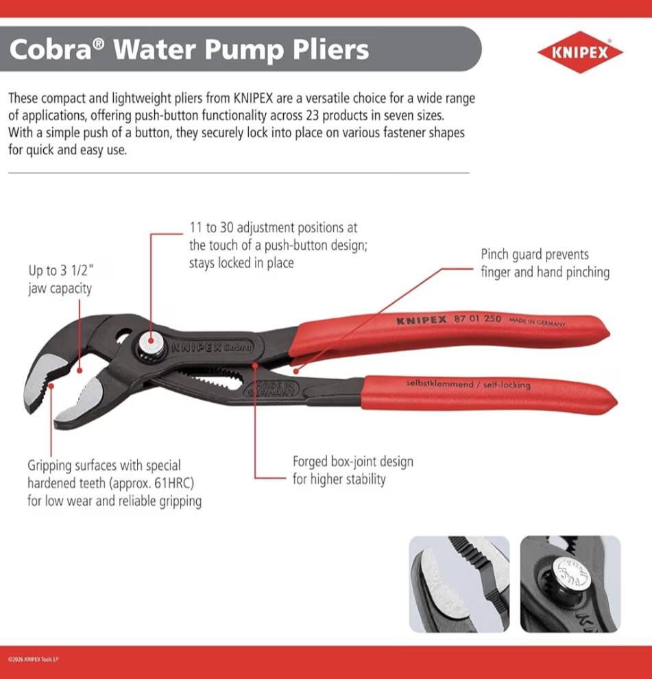 Name = KNIPEX 87 21 250 Cobra® QuickSet Hightech Water Pump Pliers grey atramentized with non-slip plastic coating 250mm